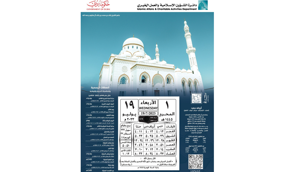 أكدت دائرة الشؤون الإسلامية والعمل الخيري بدبي بأنها طبعت 80 ألف نسخة من التقويم الهجري للعام الجديد 1445هـ، وهي معدّة للتوزيع خلال الأيام القادمة حسب خطة معتمدة.