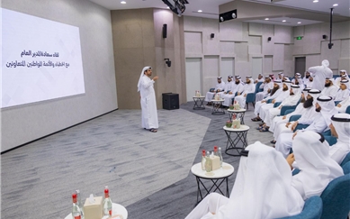 في إطار الجهود التي تبذلها دائرة الشؤون الإسلامية والعمل الخيري بدبي لتحقيق مستهدفات برنامج «توطين المنبر»، الذي اعتمده سمو الشيخ مكتوم بن محمد بن راشد آل مكتوم، النائب الأول لحاكم دبي، نائب رئيس مجلس الوزراء، وزير المالية؛ بهدف مضاعفة عدد المواطنين العاملين في المساجد، التقى سعادة أحمد درويش المهيري، مدير عام الدائرة، الخطباء والأئمة المتعاونين من المواطنين المنضمين إلى البرنامج في مبنى الدائرة الرئيسي بمنطقة الممزر.