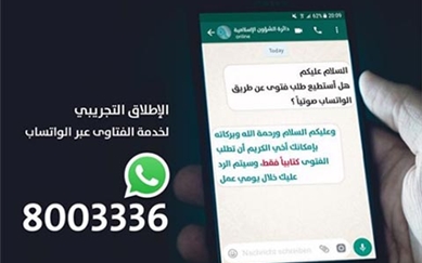 تعمل إدارة الإفتاء بدائرة الشؤون الإسلامية والعمل الخيري بدبي، على تقديم خدمات الإفتاء عبر قنوات جديدة تسمح للسائل بالتواصل المباشر مع المفتي، حيث أطلقت مؤخراً منصة رقمية "الواتساب" تخدم الإفتاء، والتي تعد الدائرة أول جهة حكومية تتبنى تقديم خدماتها الإفتائية عبرها، لتحقيق نتائج ملموسة ومستدامة في مدة زمنية قصيرة.