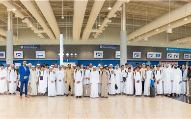 The Religious Guidance and Counseling Department and the Mohammed bin Rashid Center for Islamic Culture organized a series of awareness lectures for the participants to inform them about the significance of Umrah, its etiquette, and how to perform its rituals. A set of informational and educational brochures in various languages was also distributed to provide participants with all the necessary information during the trip.