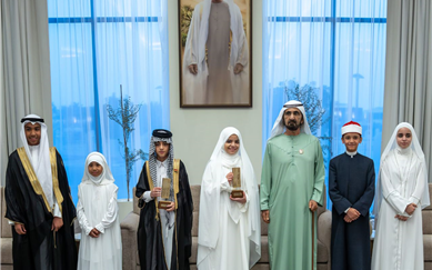 His Highness Sheikh Mohammed bin Rashid Al Maktoum presented the first-place winner of the Most Beautiful Quran Recitation for 2026 in the male category, Karrar Layth Saad from Iraq, with a prize of $1 million, and the first-place winner in the female category, Jana Ehab Ramadan from Egypt, with a prize of $1 million.