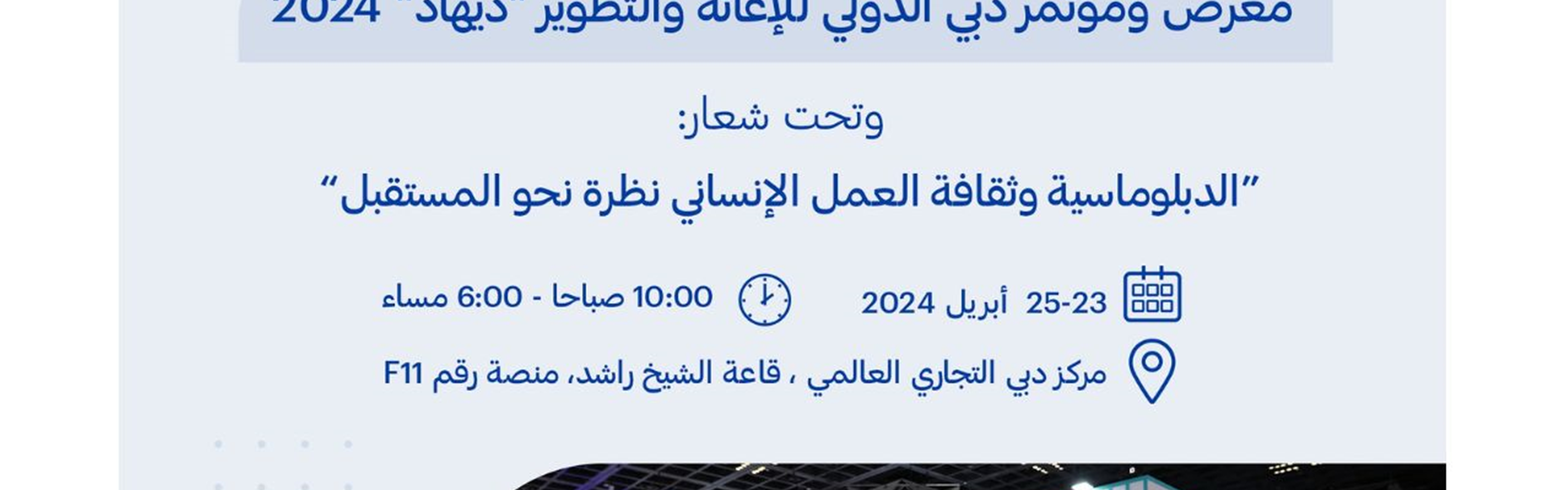 The Department of Islamic Affairs and charitable work in Dubai participates in the Dubai International Relief and Development Exhibition and conference-DIHAD, under the slogan: diplomacy and the culture of humanitarian work a look towards the future, which will continue until the 25th of April, at the Sheikh Rashid Hall, Platform No. F11 in the Dubai World Trade Center, from 10 am to 6 pm.